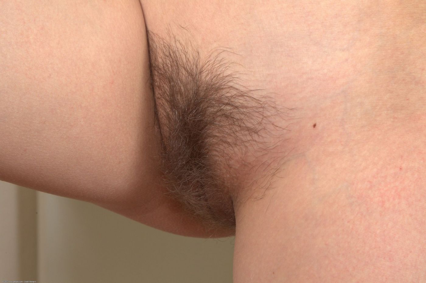 Alice shows her hairy pussy and masturbates